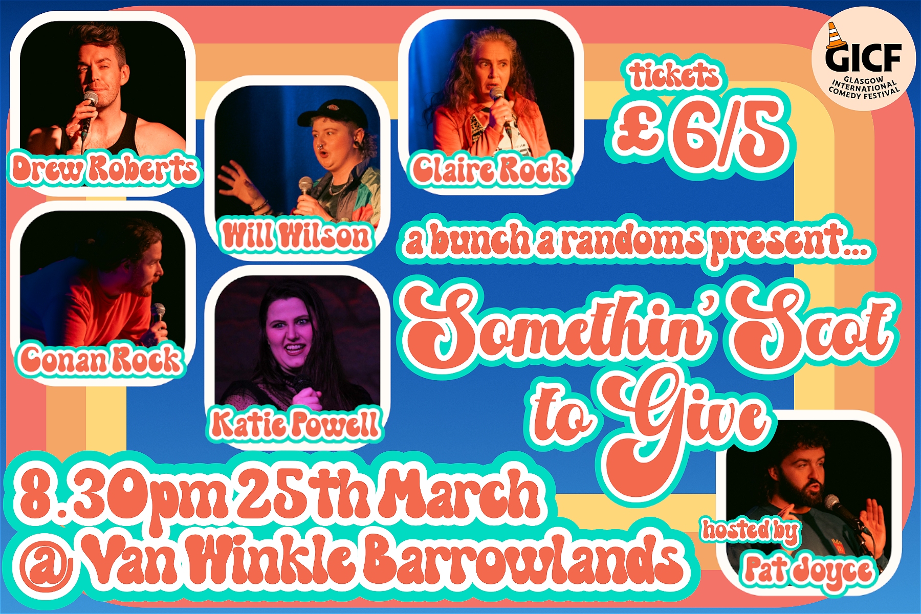 A mix of Glasgow natives and transplants from as far afield as Nova Scotia, Canada take to the stage with tales of hilarious mishaps and meanderings. Fresh from the teachings of the wonderful Viv Gee, these 6 budding comedians are breaking into the Glasgow comedy scene. Now’s your chance to catch us before we all become far too famous for our own good!