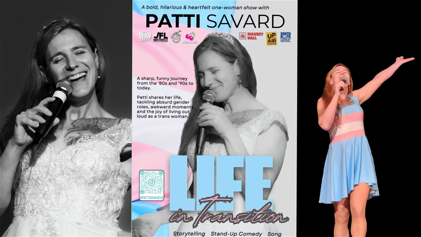 Patti Savard is a Canadian trans comedian and storyteller whose work bridges comedy, theatre, and authenticity. With a fearless voice and a warm presence, she invites audiences to laugh, reflect, and feel seen. Her credits include Toronto’s iconic Massey Hall, Vancouver’s Just For Laughs Festival, and the Seattle International Comedy Competition. Whether through song, story, or sharp stand-up, Patti brings truth and joy to every stage she steps on.