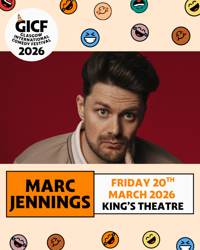 Scottish Comedian of the Year winner and Some Laugh podcast host Marc Jennings returns to Glasgow’s iconic King’s Theatre following on from his debut stand-up special recorded at the same venue, with his trademark sharp observations on current events, politics and modern dating.